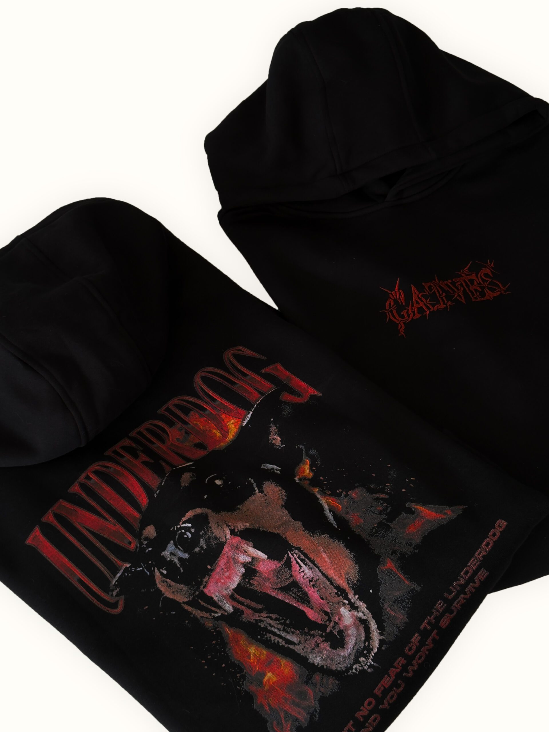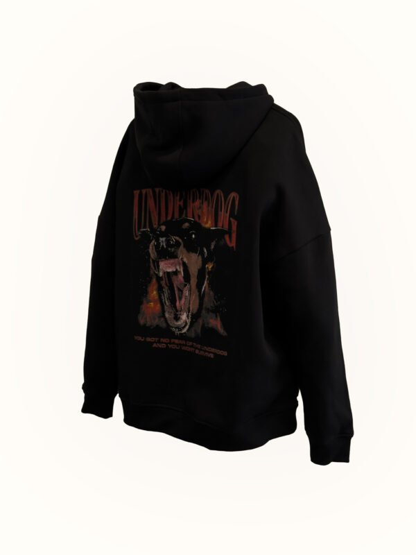 The “UNDERDOG” hoodie is made from a high-quality blend of cotton and polyester, guaranteeing durability and comfort. The cotton offers a soft, breathable touch, while the polyester enhances strength and resistance to wear, ensuring it holds up over time. This blend helps the sweater retain its shape and color, even after repeated washing, providing lasting comfort and a reliable fit.